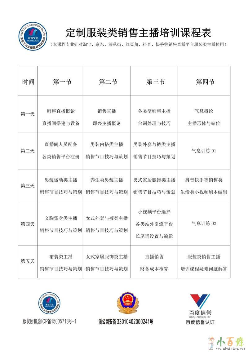 引流等;课程内容:气息发音,普通话调整,台词方法www.xbaixing.com小百姓网。销售节目策划(服装类、